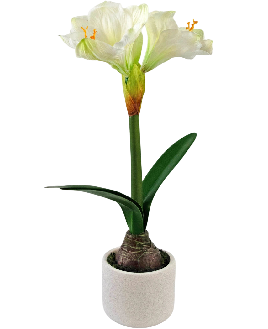 Artificial flower amaryllis real touch white 48 cm