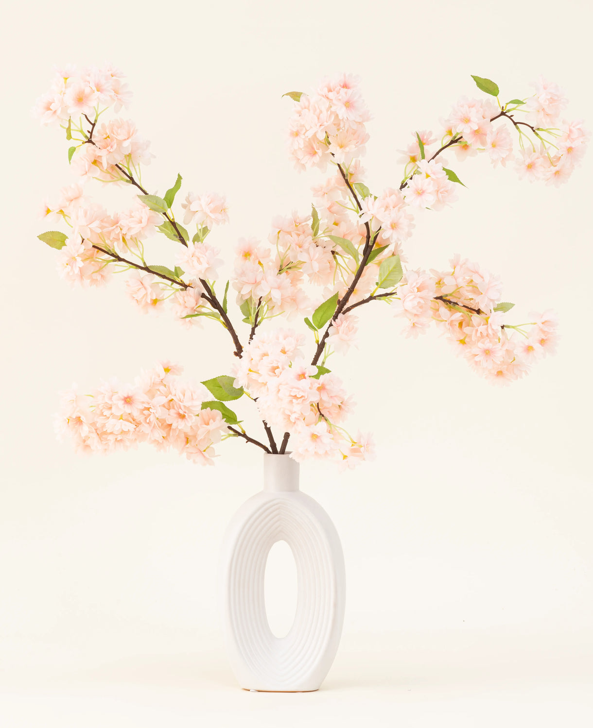 Bring a touch of summer freshness into the house with the silk artificial flowers bouquet cherry blossom light pink , consisting of two high -quality stems. With their lively pink hues and realistic details, these flowers cannot be distinguished from real. Perfect for every interior, from modern to rural.