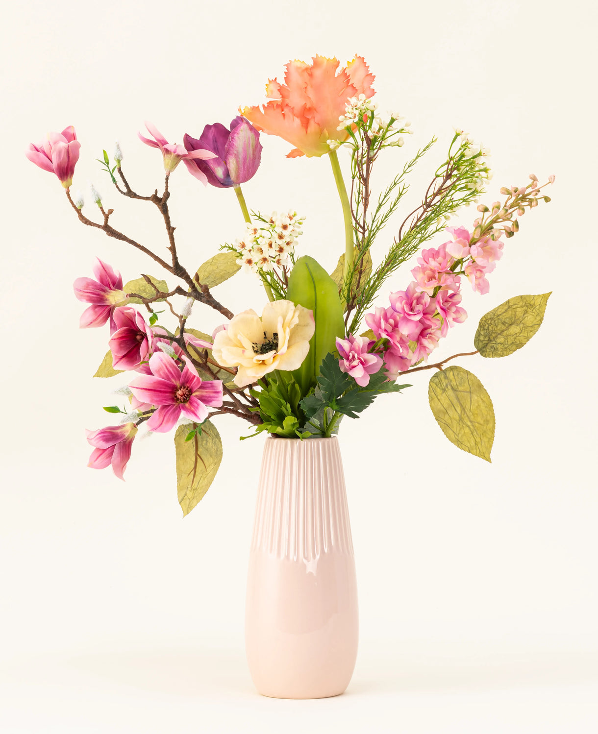 Experience the soft spring colors of our art bouquet, year after year. This enchanting artificial flower bouquet combines refinement and nature in a timeless composition. The graceful...